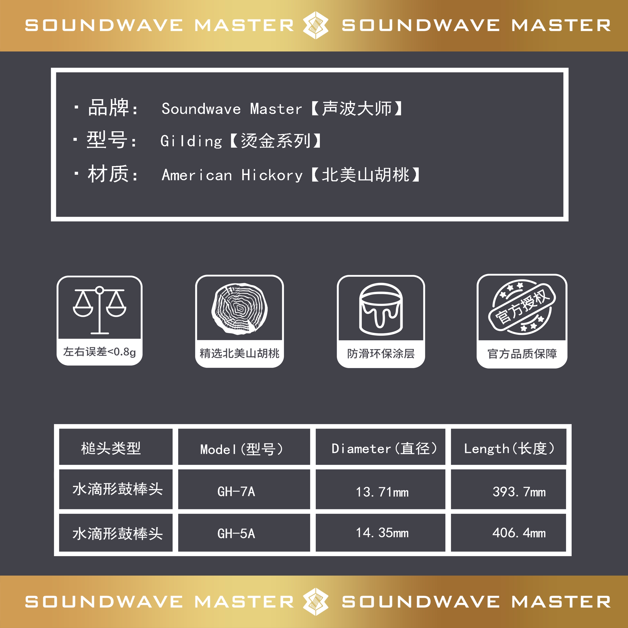 Sonic Master Drum Stick Bronzing Gold Series SOUNDWAVEMASTER Drum Stick Frame Subdrum