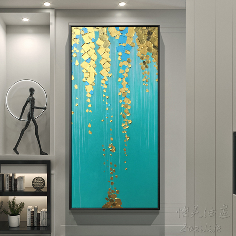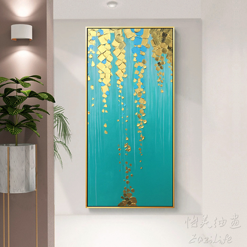 Fortune tree decorative oil painting pure hand-painted porch aisle corridor modern light luxury abstract three-dimensional simple European hanging mural