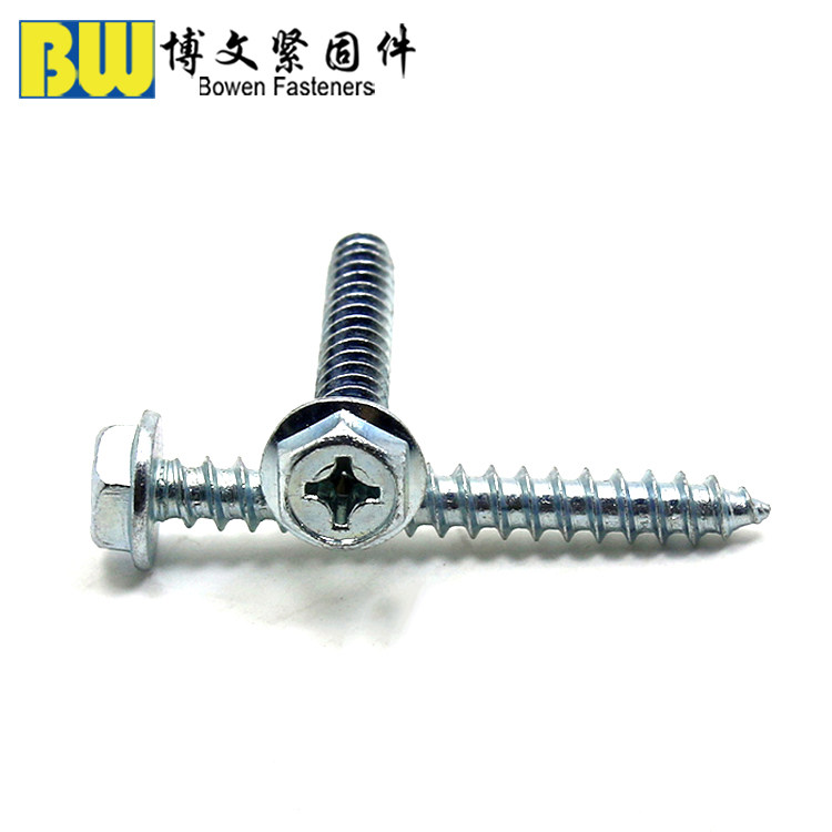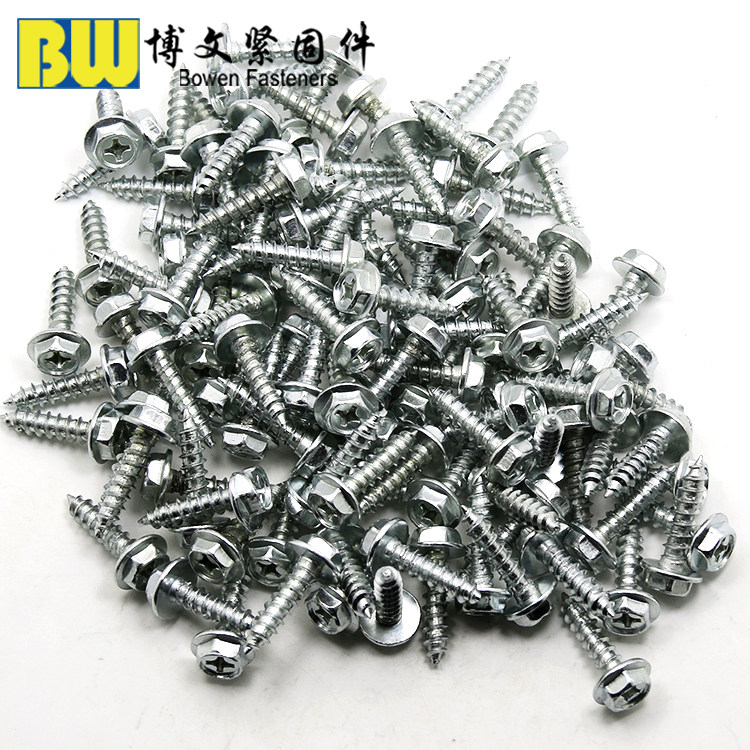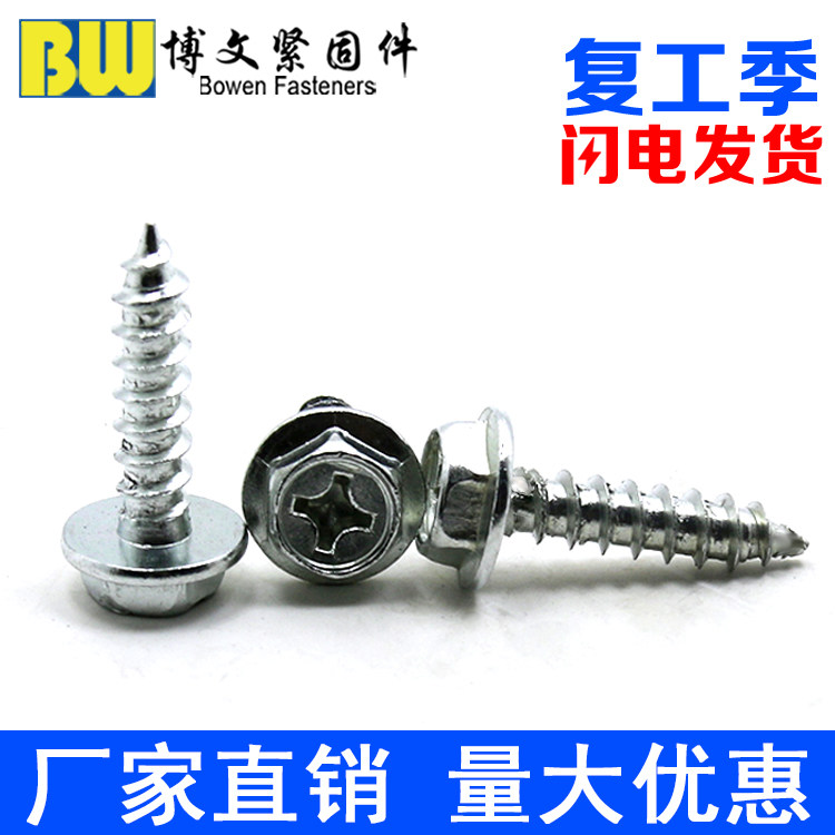 Blue and white zinc cross external hexagon flange self-tapping screw drill tail screw self-drilling screw with cushion self-tapping M4M5M6