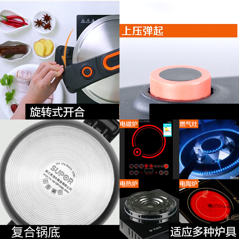 Supor pressure cooker household gas induction cooker general 304 stainless steel pressure cooker explosion-proof small 1-2-3-4 people