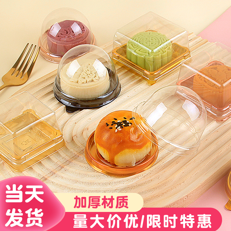 High-grade egg yolk crisp transparent moon cake single round thickened blister box single Xuemei Niang disposable packaging box