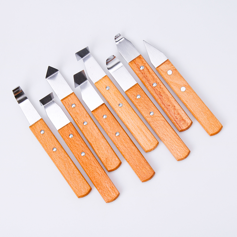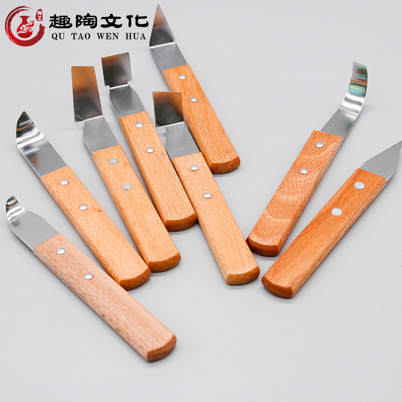Pottery wood handle adobe 8 pieces of various tool bits mud plastic repairing blank tool engraving styling plaster scraper to fix the blank knife