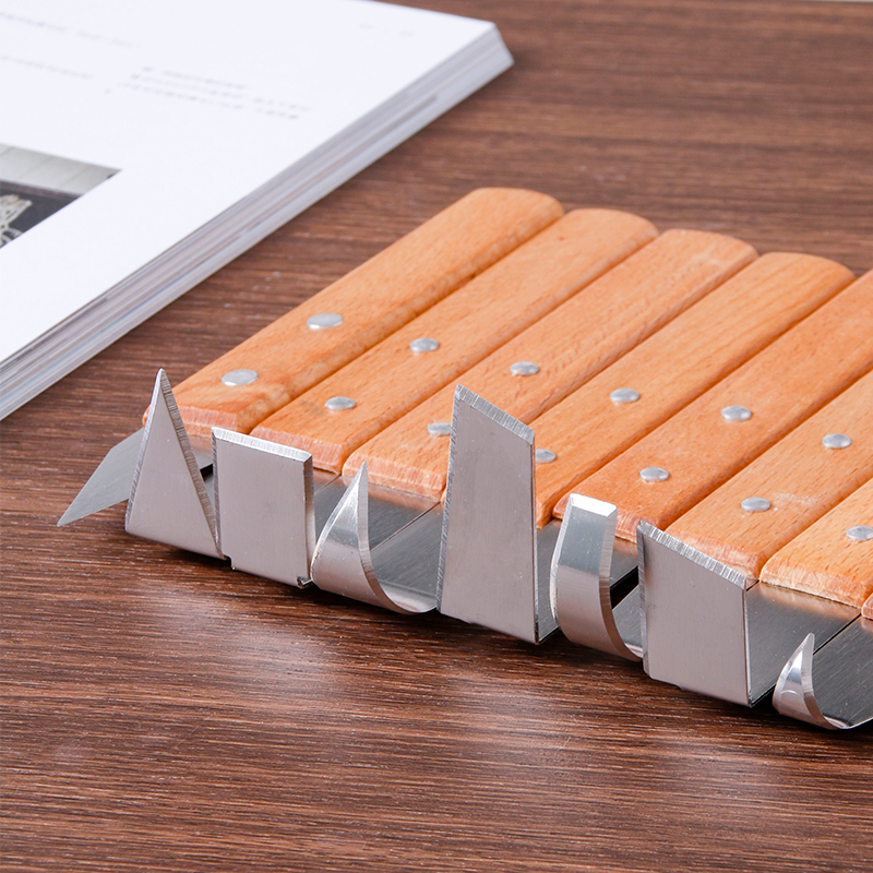 Wood Handle Adobe Blanks Eight Pieces Stainless Steel Repair Blanks Eight Pieces Stainless Steel Repair Blanks Eight Sets Containing Box Wood Handle Repair Blanks Eight Pieces of Housed Box