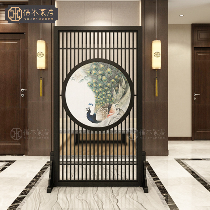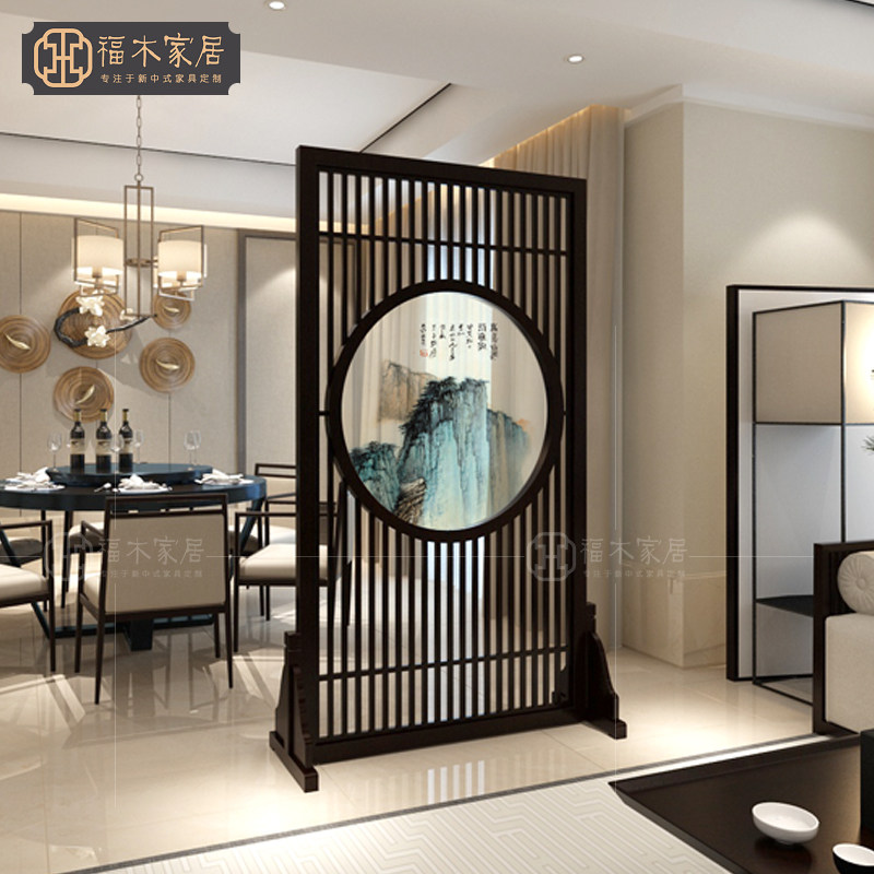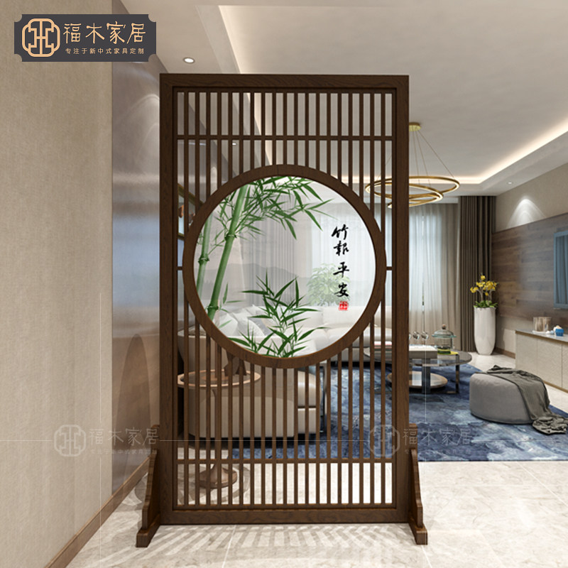 Fukuki Fence with Circular Screen in the living room bedroom solid wood screen new Chinese porch inlet decoration partition