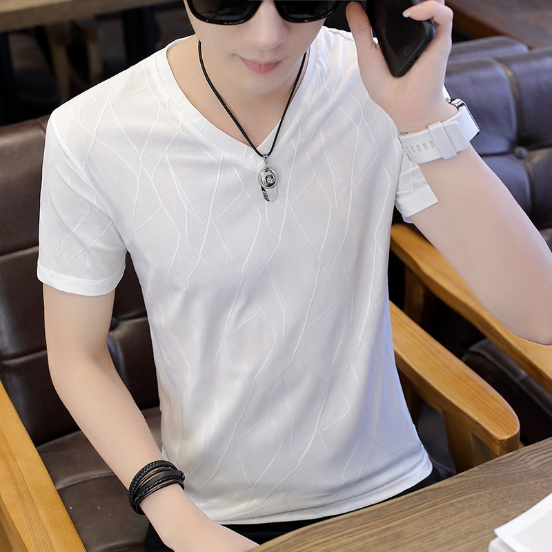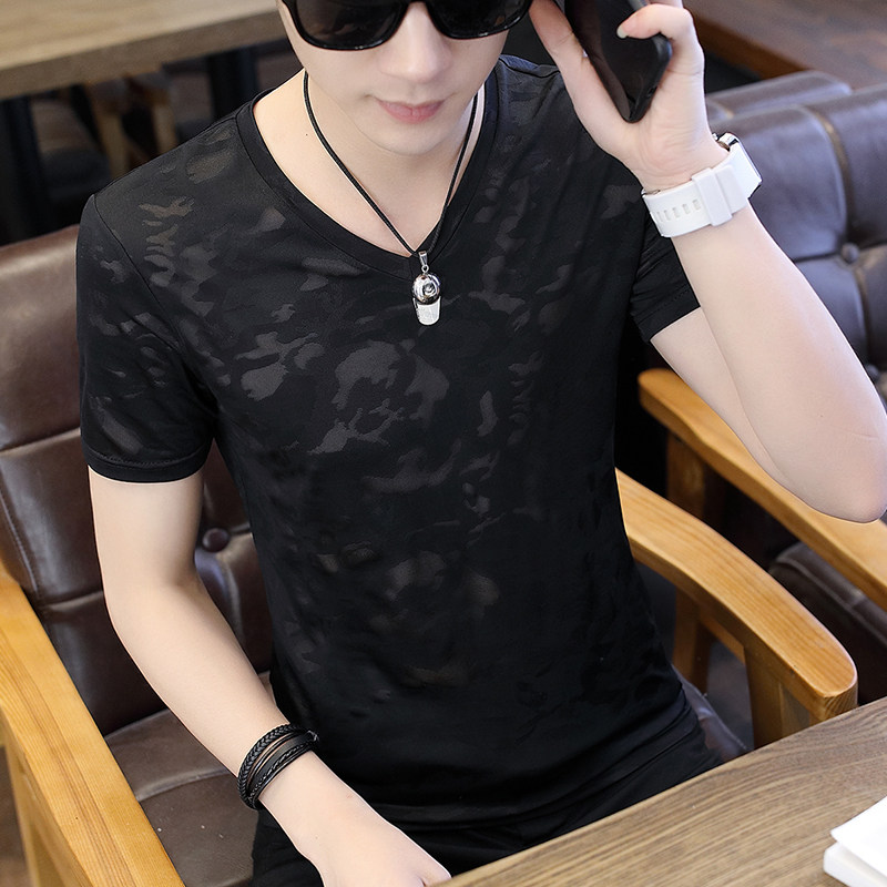 2020 new ice silk T-shirt men's short-sleeved trend V-neck slim-fit ultra-thin mesh cool half-sleeve summer top