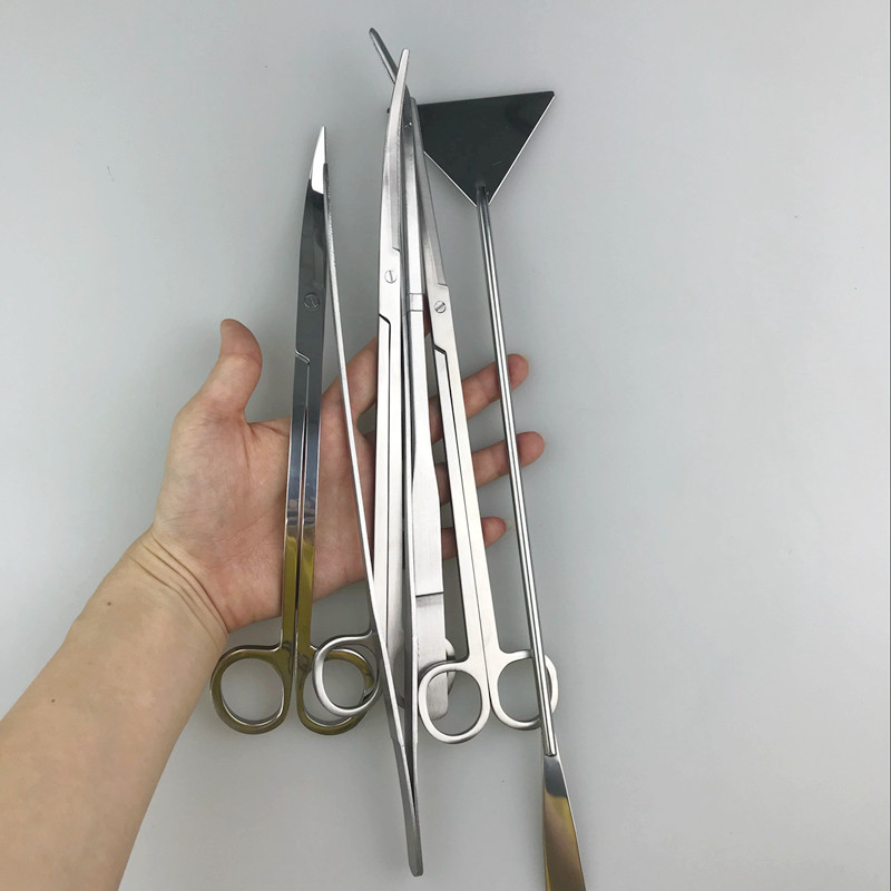 Fish tank aquarium water grass cylinder stainless steel tool tweezers clip scissors wave cut flat sand shovel water grass tool