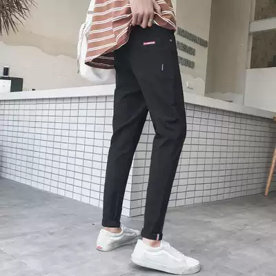 Summer boys ' pants Men's Korean version of the trend Hong Kong style nine-point casual pants slim-fitting small feet wild student black pants tide brand