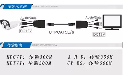 Surveillance camera lens coaxial analog HD twisted pair cable transmitter power supply Video audio integrated to network cable
