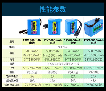 12V 2200mAh lithium battery 12V 2200mAh lithium battery (with charger) 12V 2800mAh lithium battery 12V 2800mAh lithium