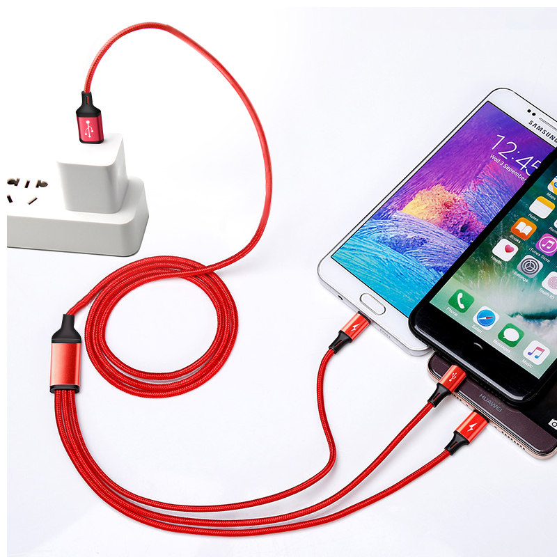 Suitable for Apple Huawei and Xiaomi One drag three data lines Mobile charging special ultra short 0 3 m portable short 30 cm type-c André usb 10% Three-phone onboard charger