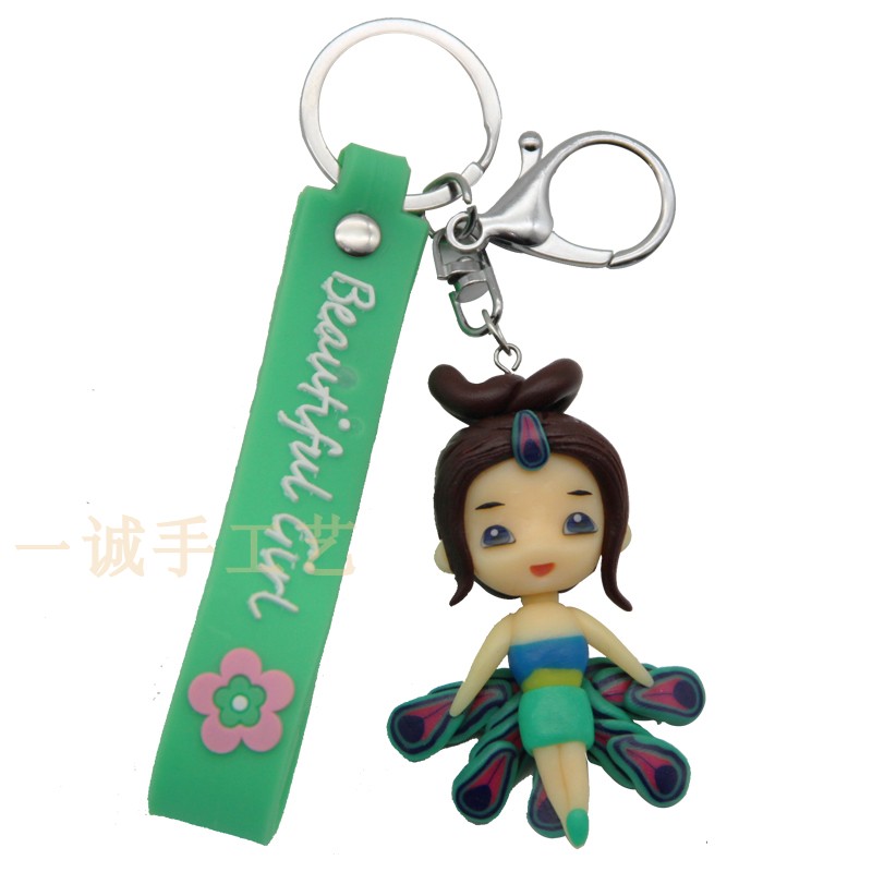 Blue peacock wrist rope New Year cartoon couple pendant mobile phone lanyard pure handmade soft pottery jewelry 2022 batches of fine products