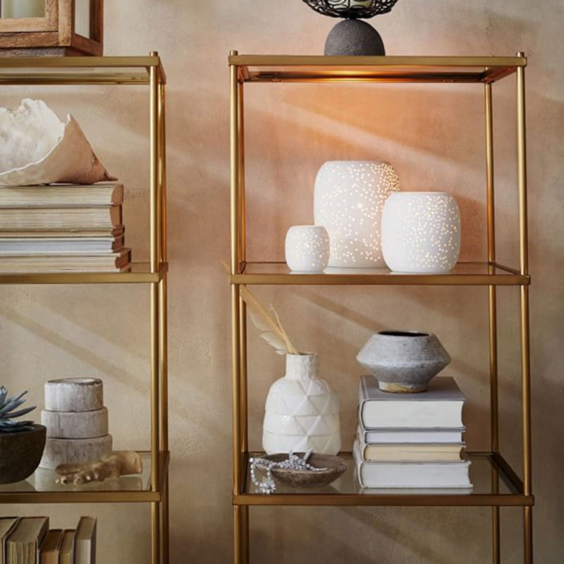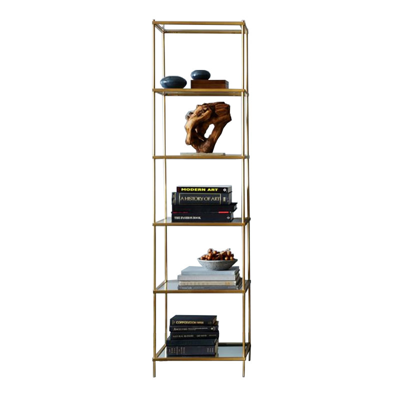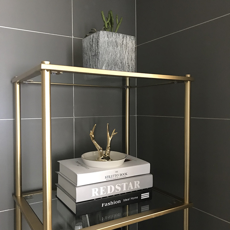 Nordic minimalist cosmetics storage shelf modern display cabinet floor rack wrought iron golden glass shelf