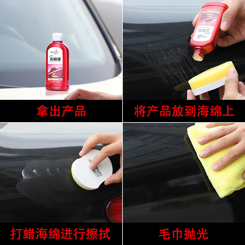 (4) Mild to moderate scratch treatment to restore the gloss of the paint surface (strong type mild type scratch wax) (2) 80ml scratch wax towel sponge (strong type - mild to moderate type without exposed bottom)
