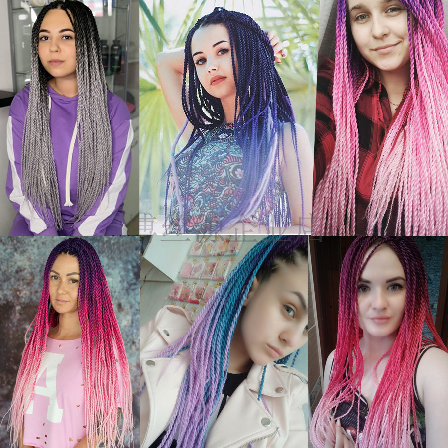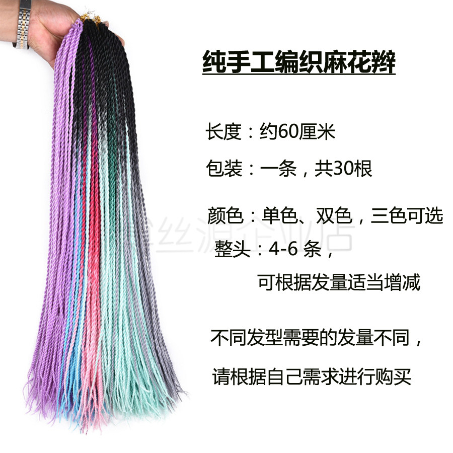 Wig women Dirty Hair Braid Colored Fine Braid Two Strands Twigbo Braid Seven Color Children Choreography Hip Hop Small Fine Braid 30 Roots