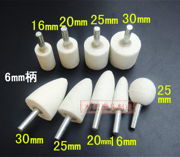 6mm handle grinding wheel flint white corundum electric grinding head grinding metal polishing cylindrical cone ceramic grinding wheel grinding head