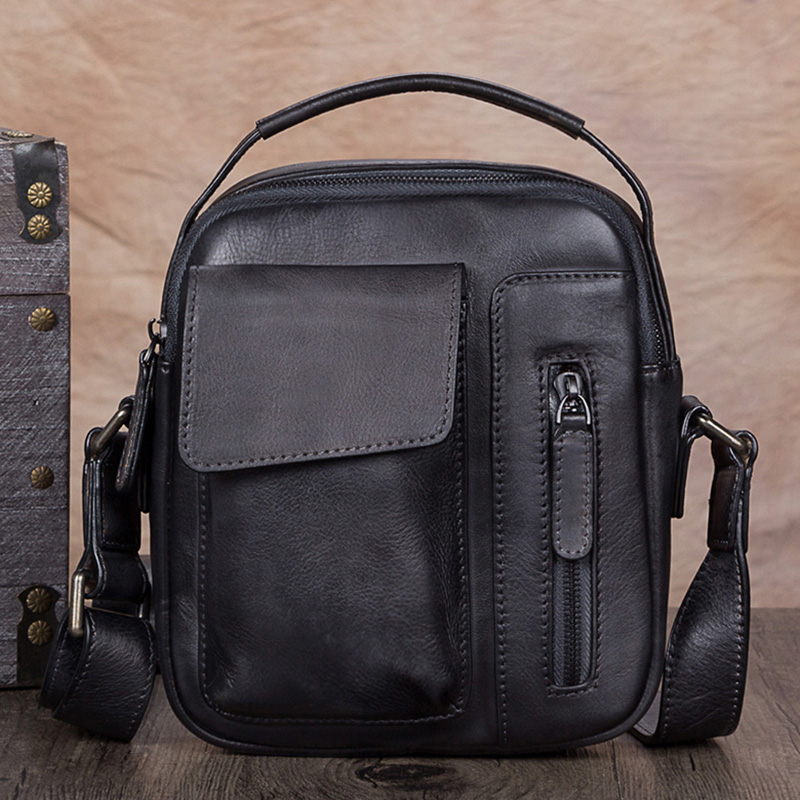 Retro Bag Handmade Leather Bag Men's Head Layer Bull Leather Men's Bag Leather Men's Bag Inclined Satchel Bag Men's Shoulder Bag Men's Leisure