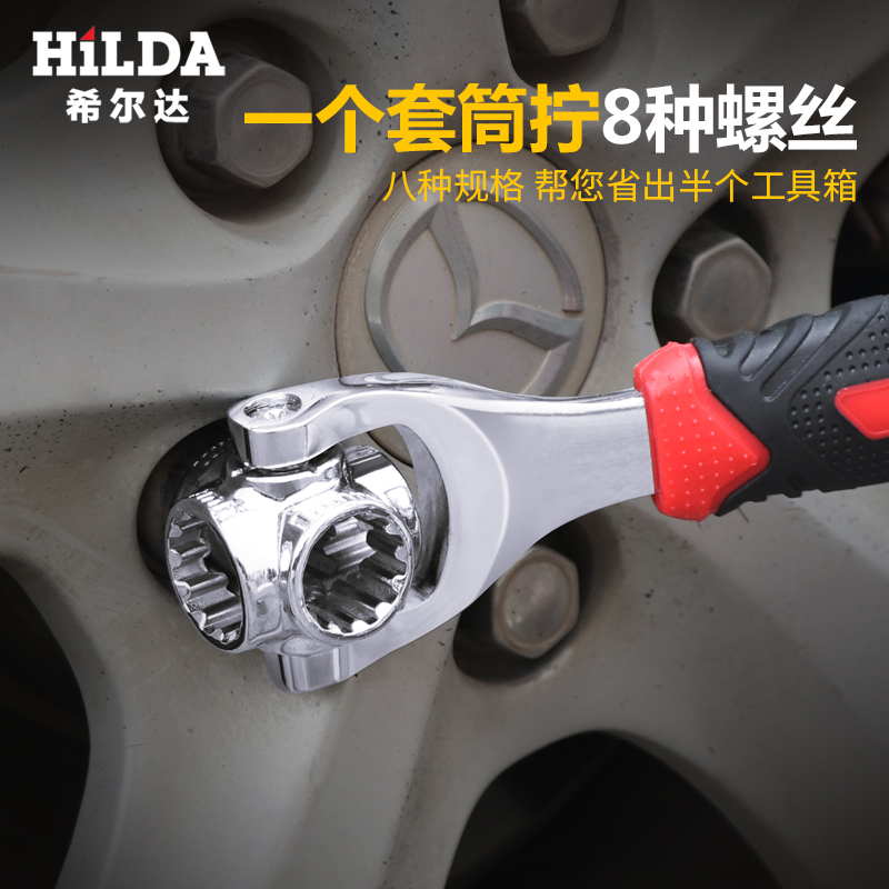Sleeve combination wrench Eight-in-one multifunction sleeve wrench 8 fit 1 dog bone swivel hexagonal 52 all-in-one wrench