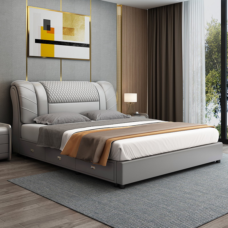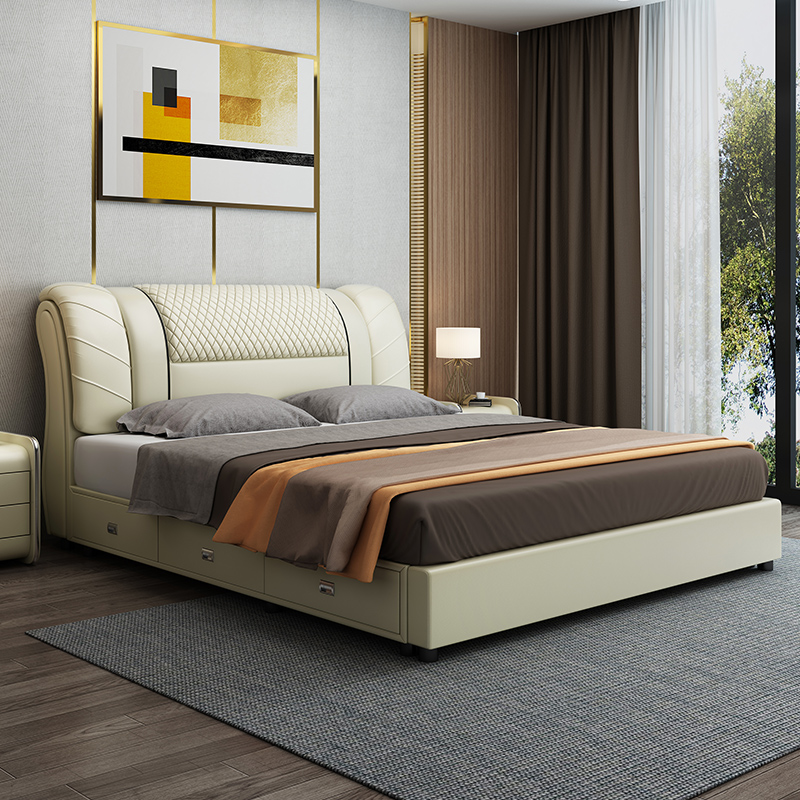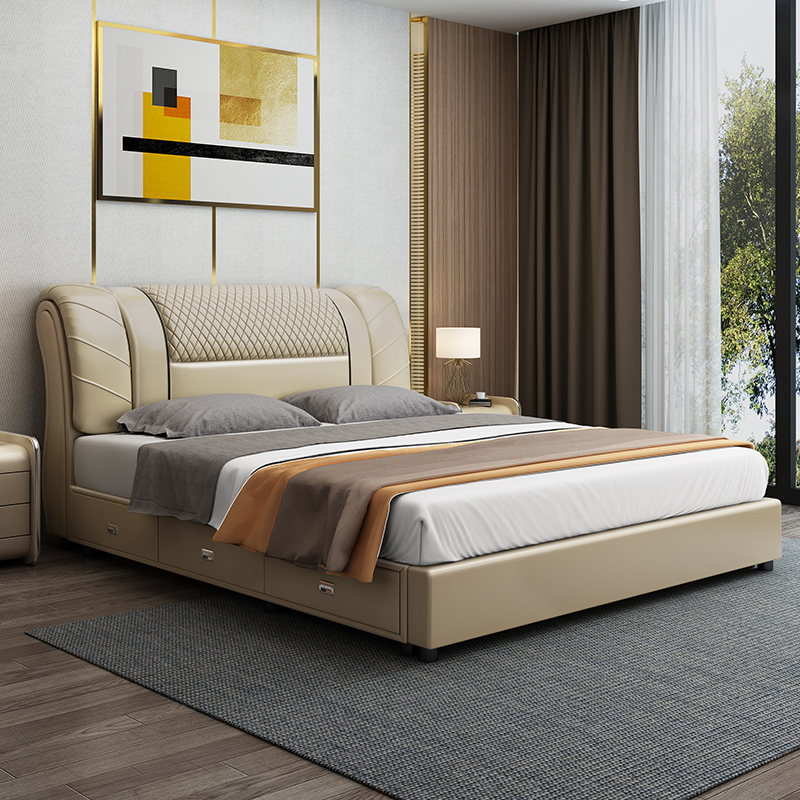Leather bed 1 8 meters modern minimalist double bed 1 5 meters leather art bed European-style tatami large soft bed master bedroom wedding bed