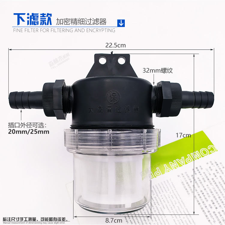 Agricultural spraying machine suction water filter for secondary retrofitting anti-clogging fine filter screen transparent visible fish tank filter