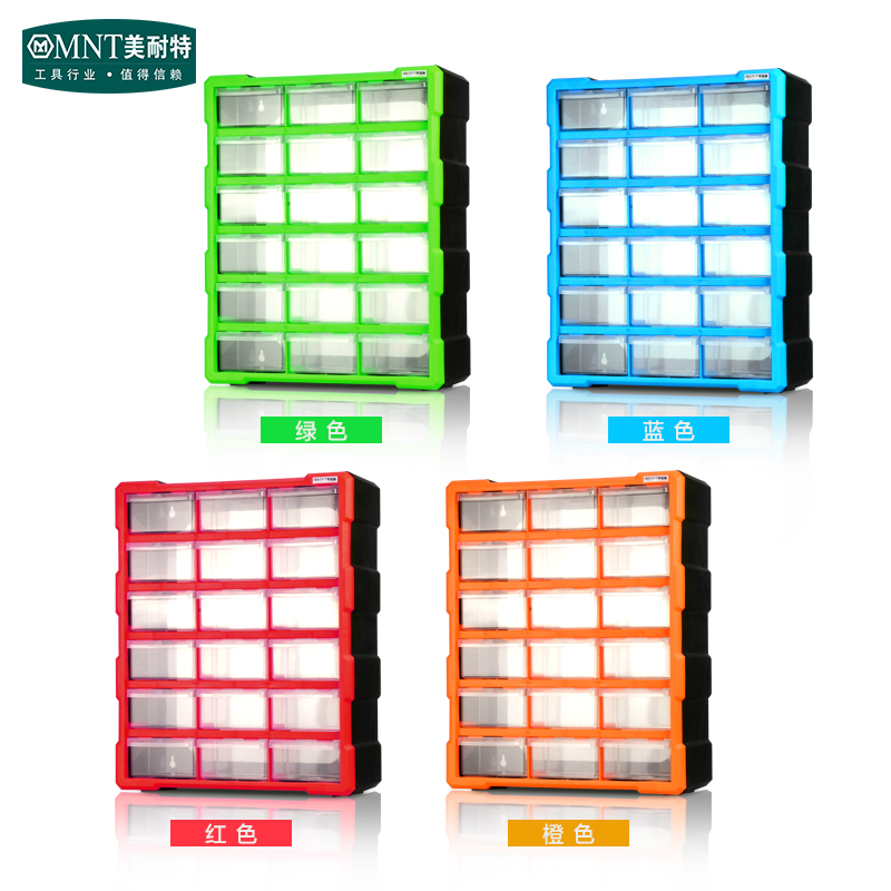 18-grid drawer containing box (green) 18 Gdrawer containing box (blue) 18 Gdrawer containing box (red) 18-grid drawer containing box (orange)