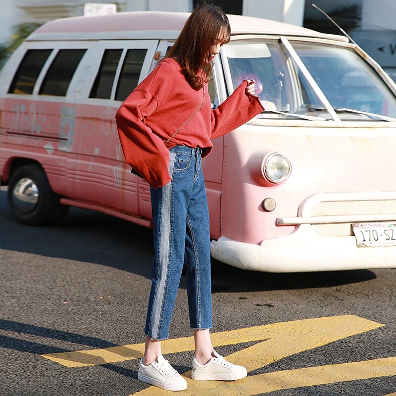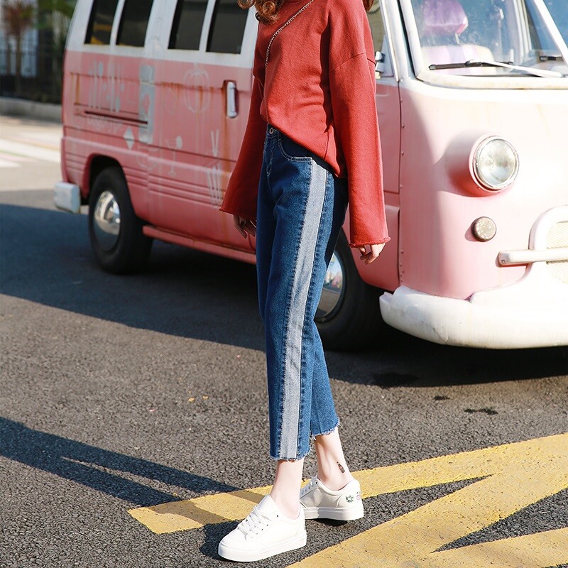 chic high-waisted jeans women's loose spring 2021 new students Joker vintage nine straight Harren pants