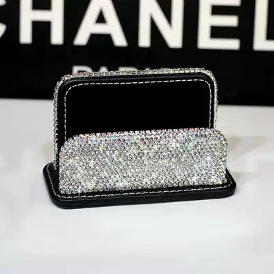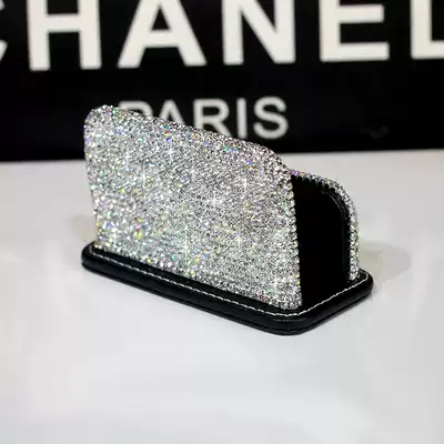 High-grade leather diamond-studded business card box business card holder creative crystal rhinestone business business card rack office ornaments
