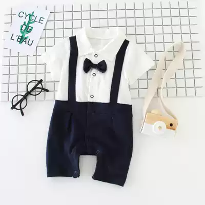 Baby children summer cotton short sleeve baby jumpsuit men and women Baby bow tie 100 days old dress climbing suit newborn
