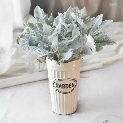 European silver-leaf chrysanthemum simulation plant European-style simulation flower fake floral art with leaf green plant flower arrangement material Nordic decoration
