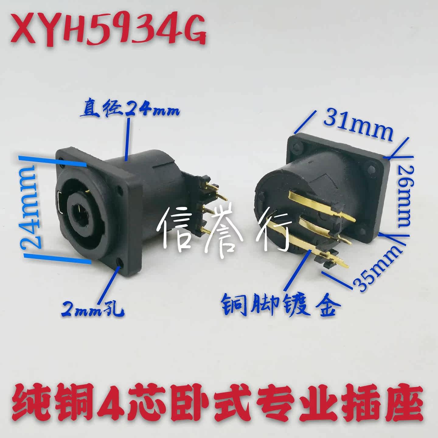 Gold plated 4-core sound professional socket four-core horizontal small square seat tuning table speaker power amplifier trumpet microphone mother seat