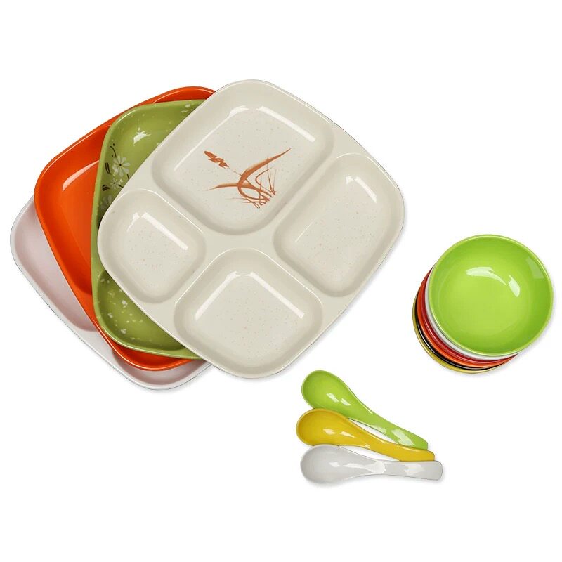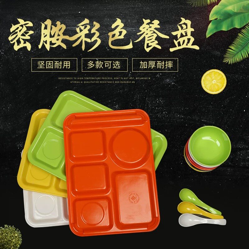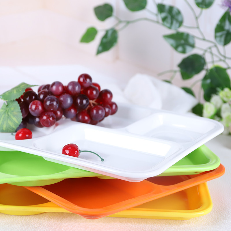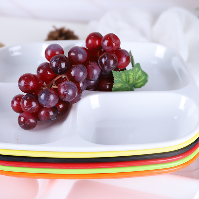 Four grid fast food plate melamine plate imitation porcelain tableware color compartment plastic school dining room kindergarten rectangular plate