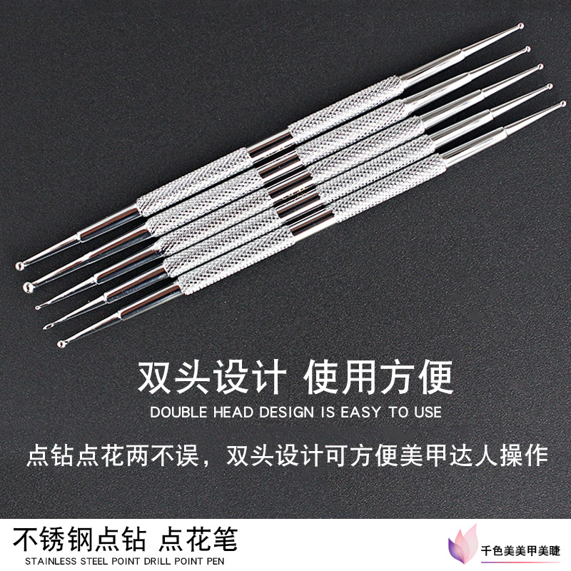 Nail commonly used tools imported stainless steel pearl pen pen dot - flower pen inlaid drill set five