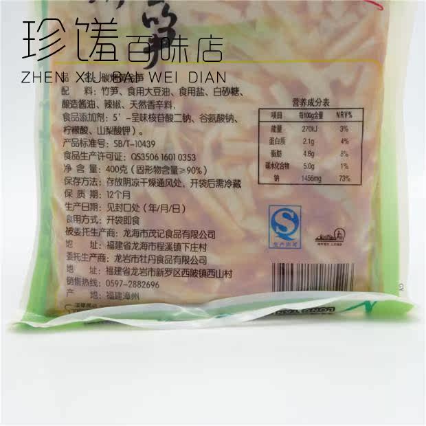 Bamboo shoots, edible soy oil, edible salt, white sugar, brewed soy sauce, sesame seeds, peppers, natural flavors