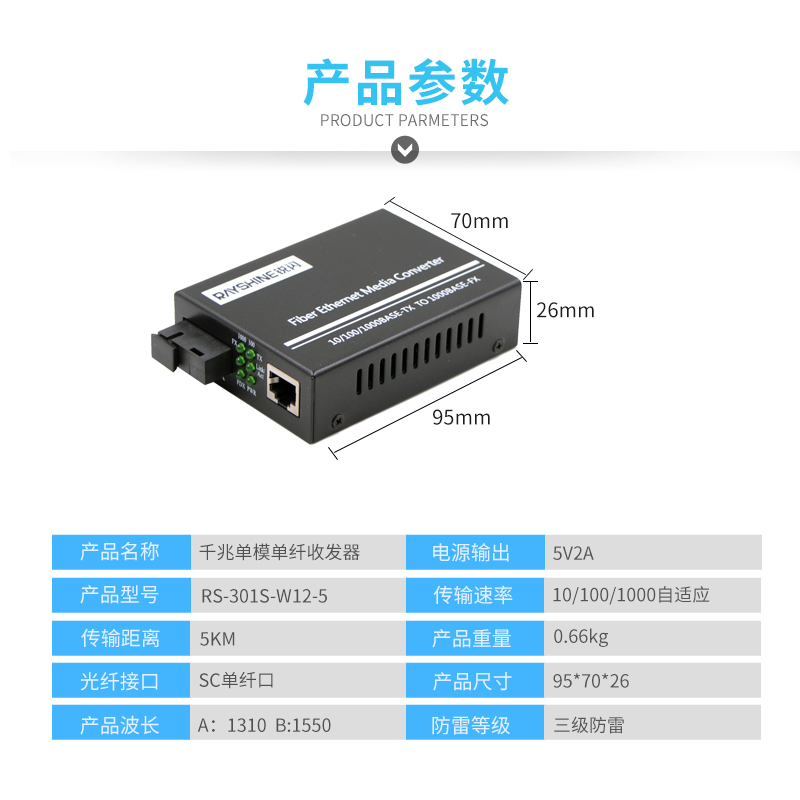 RS-301S Gigabit Single-Mode Single Fiber Transceiver Optical Converter Monitor network Gigabit Fiber Transceiver 20KM 40KM 60km 8