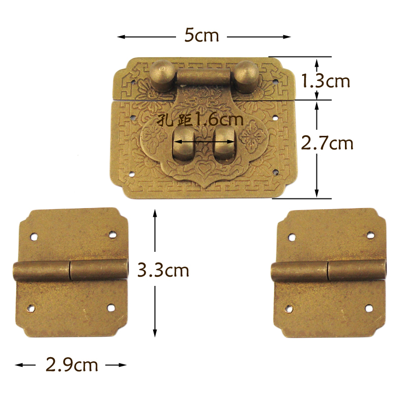 Chinese antique pure copper jewelry box box buckle hinge kit camphor mahogany box accessories brass buckle set