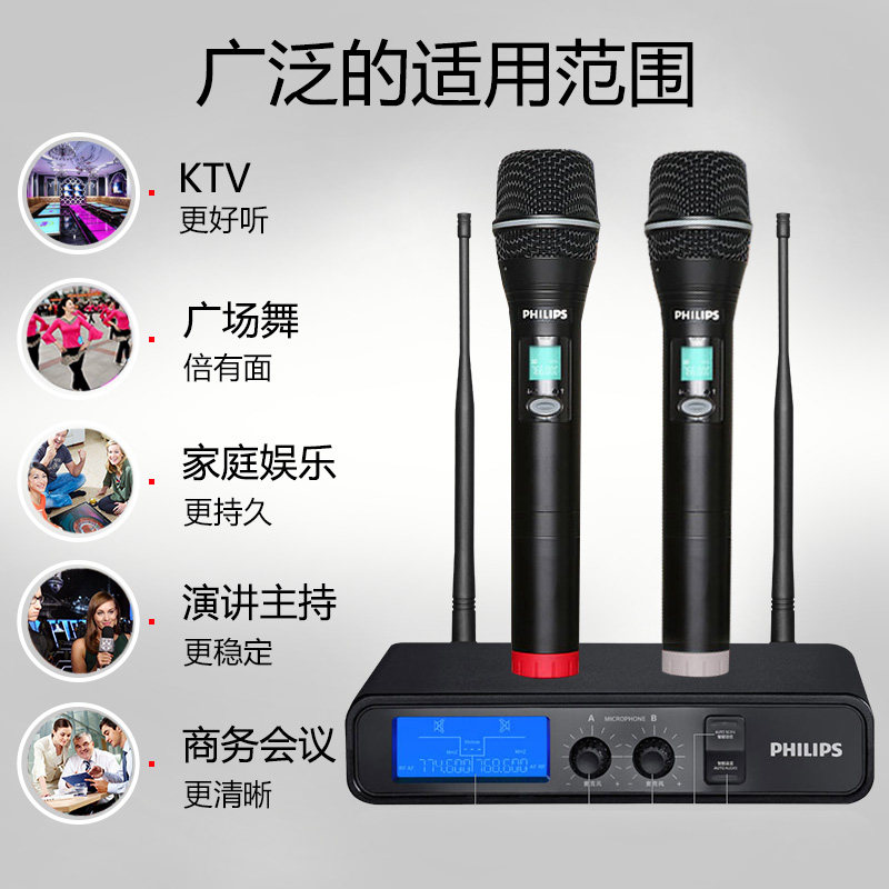 Philips SBCMD310 Wireless microphone One drag II Professional home ktv All singing Karaoke outdoor microphone special K Gogod instrumental outdoor U segment microphone