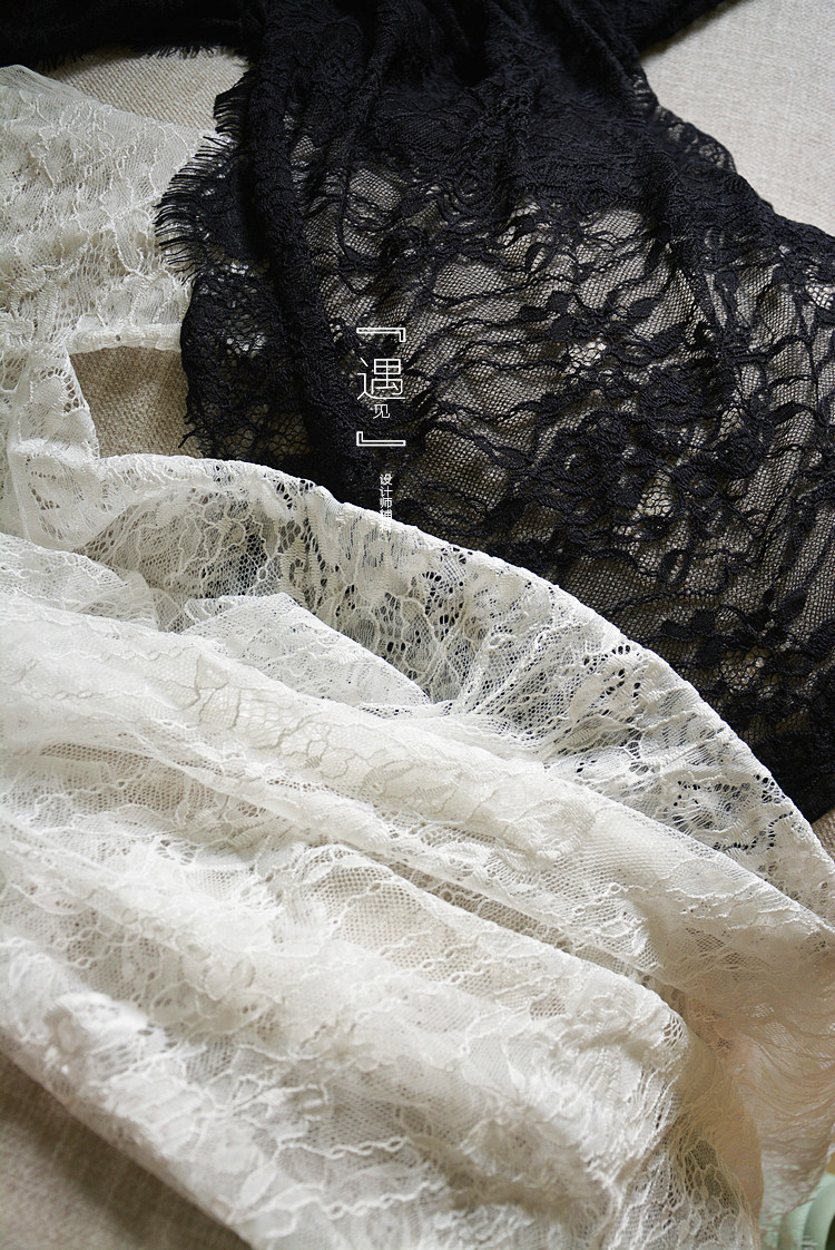 DIY Hollowed-out Wide Lace Wedding Dress Gown Accessories Eyelash Lace Fabric Sexy Overdraft Clothing Fabric White Black