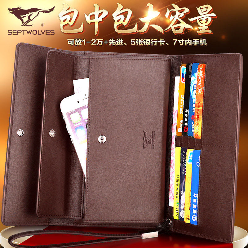 Septwolves seven wolves long wallet wallet wallet leather Korean men's wallet 1A3964151-02