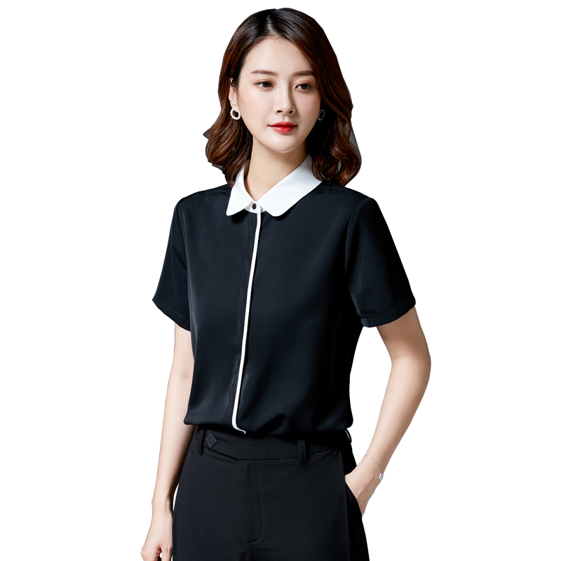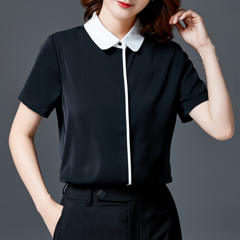 Black Career Shirt Woman Short Sleeve Summer Thin working white shirt High end foreign pie Large size Size Snow Spinning Blouse