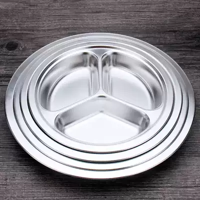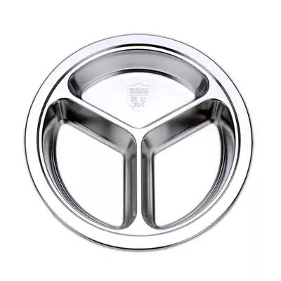 304 thickened stainless steel dinner plate round dinner plate primary school kindergarten children baby three or four grid dinner plate