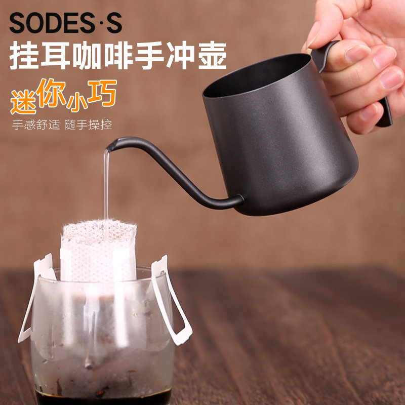 SODES Shand flush coffee fine mouth jug Home Mini ear hanging jug stainless steel slender mouth drip jug 4mm