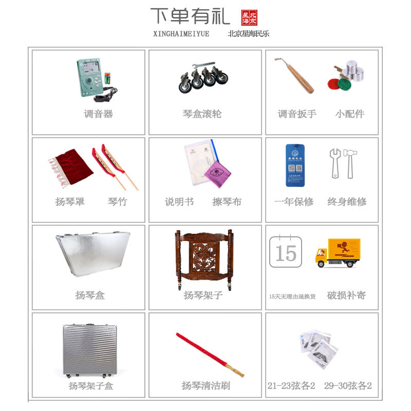 Beijing Stars Sea Level Nanmu Relief Dragon 402 Collection Class Yangqin instrument Leong Opera Pearl pattern 86210F-A
