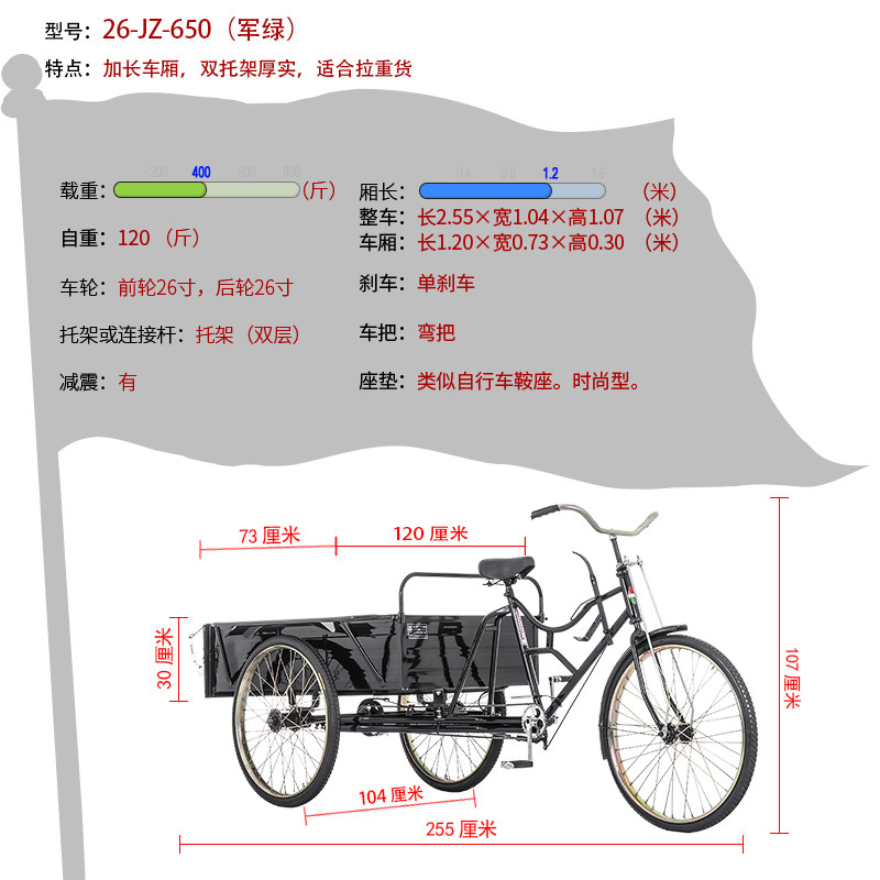 Five-star 1 2-meter heavy-duty human tricycle solid fork pedal three-wheeled bicycle cargo pull cargo double-layer pallet