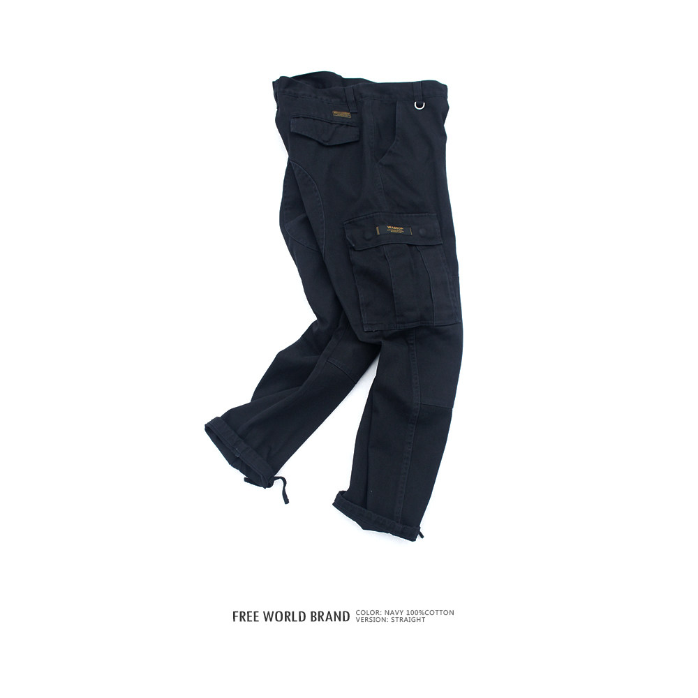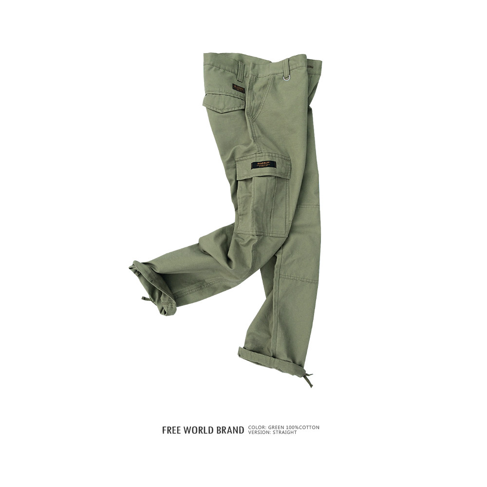 FREE WORLD Japanese retro washed overalls men's and women's tide brand trousers multi-pocket loose straight casual pants