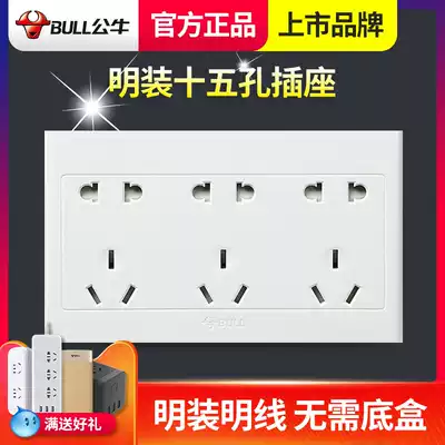 Bull surface-mounted switch socket panel surface-mounted open line open box household power supply 9 nine holes 15 holes Fifteen holes porous