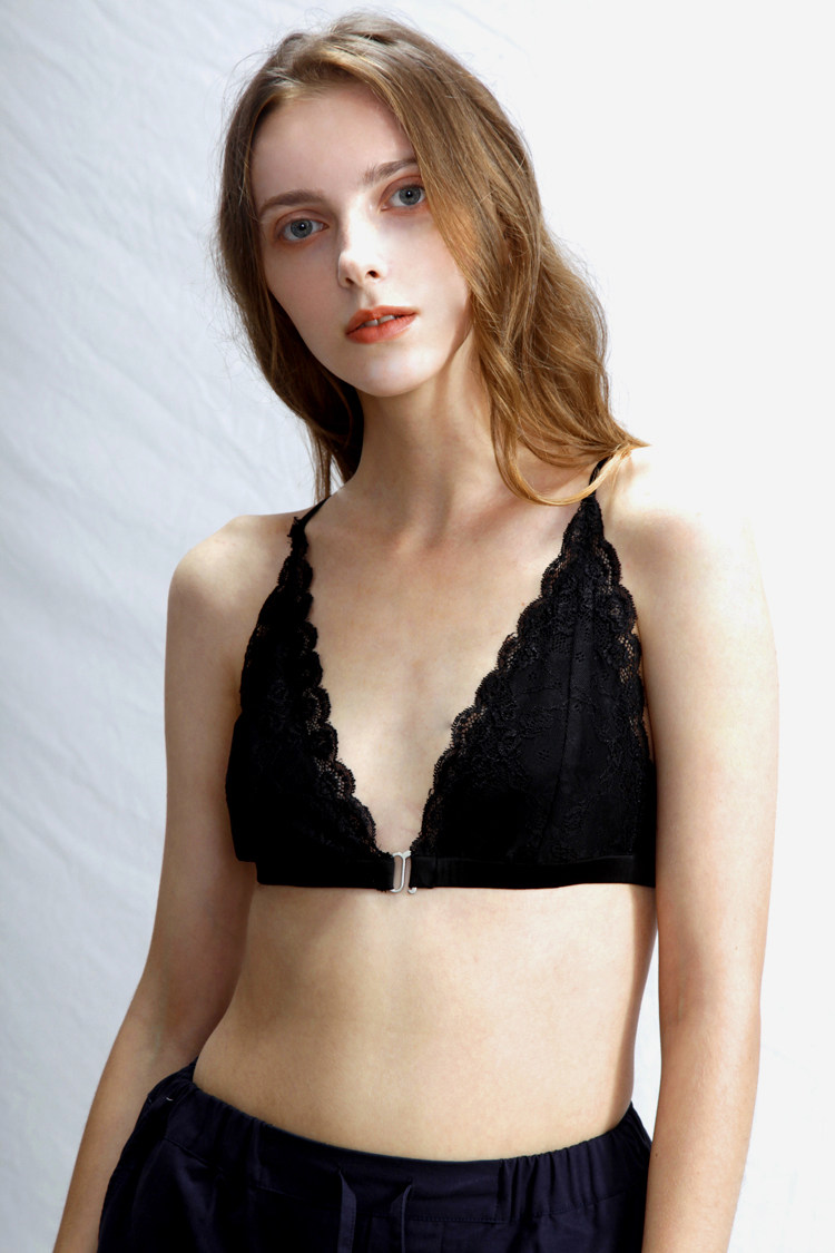 Chen Xiaoman Deep V-neck underwear Mulberry silk beauty shoulder back rimless lace full cup French bra bralette