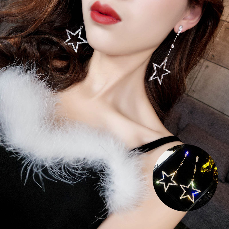 2020's latest s925 silver and US exaggerated temperament of anti - allergic earrings personality long ear - crash ear accessories