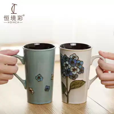 Beige floral cup (long spoon for cup lid) green floral cup (long spoon for cup lid) beige green flower pair Cup (send cup lid long spoon) Single Cup Gift Box (incomparable note cup color