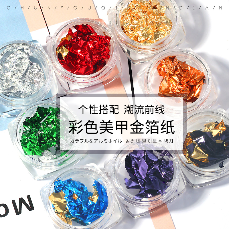 Nail art cellophane fragments net red eye makeup sequins new aurora irregular gold foil symphony nail jewelry stickers