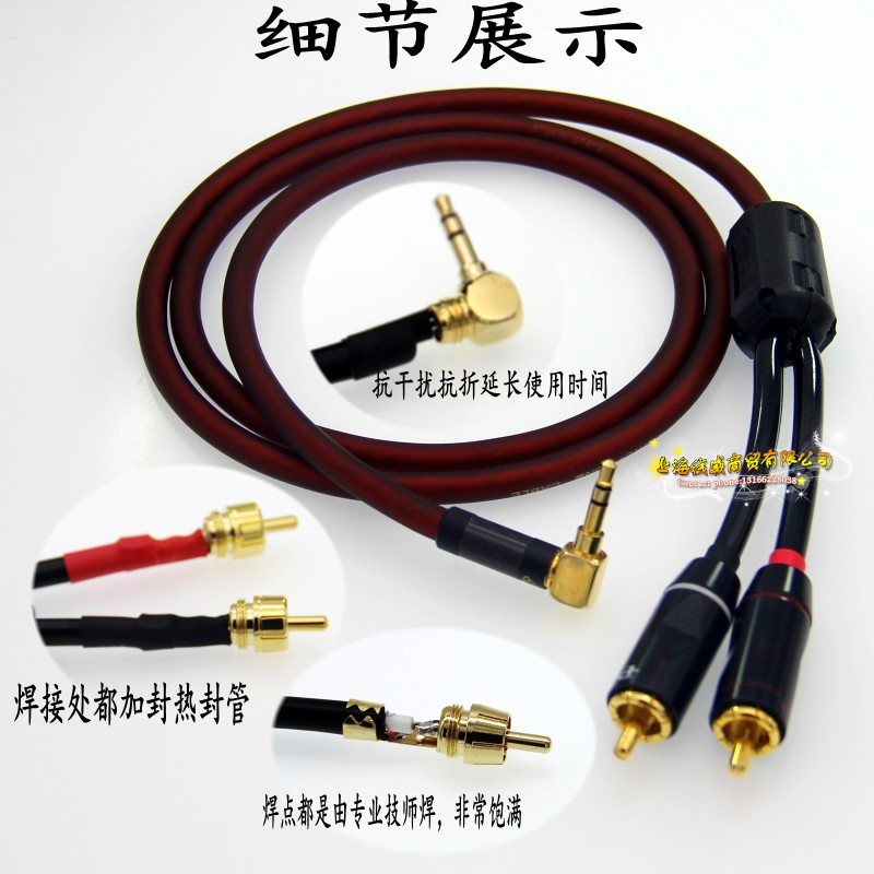 Anti-interference audio cable 1: 2 3 5mm turn double lotus mobile phone 1: 2AV signal audio speaker cable