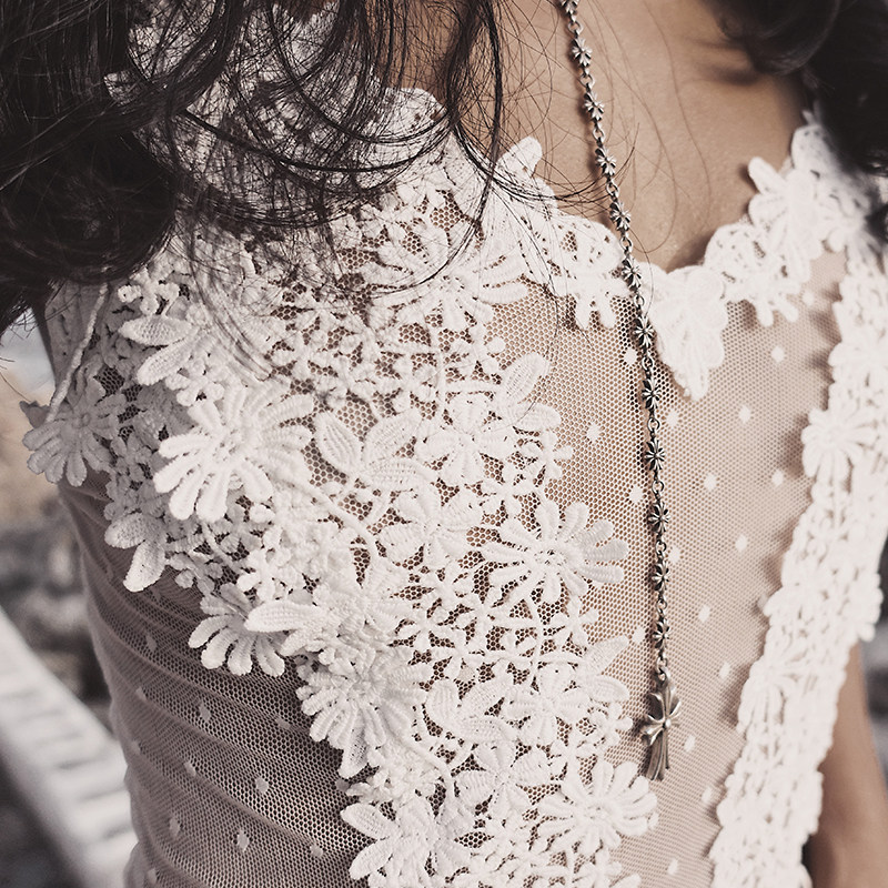 Glow girl HUIHUI positioning laminated embroidery Podot mesh yarn emulated silk lotus leaf side holiday with sleeping dress